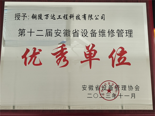第十二屆安徽省設(shè)備維修管理“優(yōu)秀單位”