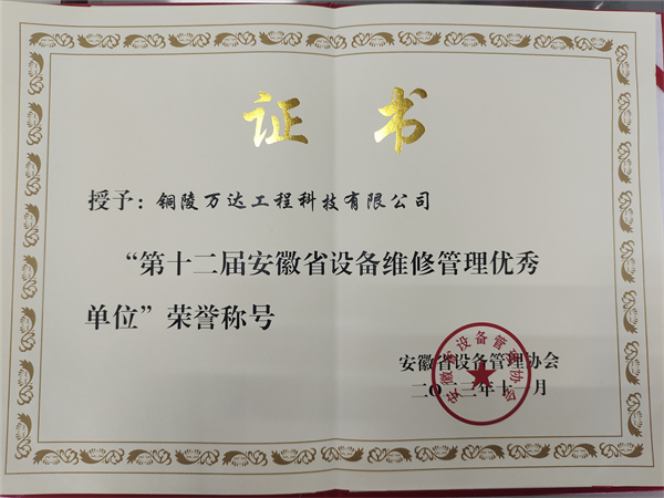 “第十二屆安徽省設(shè)備維修管理優(yōu)秀單位”榮譽(yù)稱號