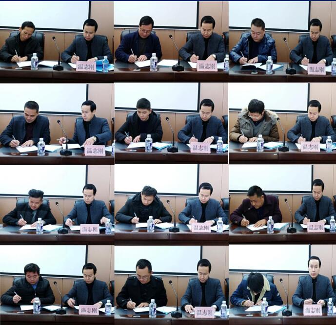 ?大會第三項,由公司董事長、總經理溫承橋與生產副總溫志剛、總經理助理楊冬平、總經理助理項和季、安環部長程翔;生產副總溫志剛和各項目部負責人簽署各級《安全生產責任狀》。