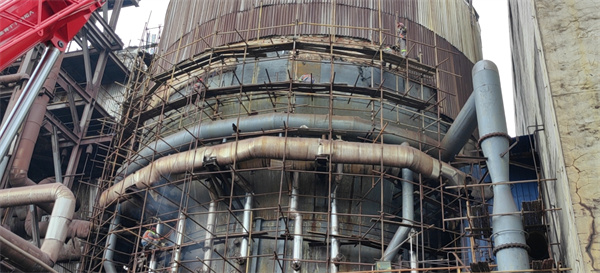 銅冠冶化(銅陵)公司2022年度硫酸車間一、二期轉化換熱器、預熱器、焙燒爐冷盤管、焙燒爐殼體檢修項目火熱施工中